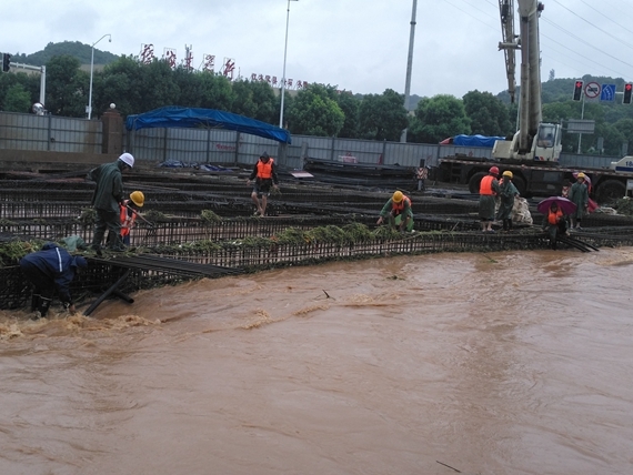 類似的場(chǎng)景也發(fā)生在湘府路河西高架橋項(xiàng)目部,該項(xiàng)目部剛剛進(jìn)場(chǎng),尚未正式動(dòng)工。接到湘江新區(qū)管委會(huì)關(guān)于靳江河告急的搶險(xiǎn)通知后,也立即全員出動(dòng)積極投入抗洪戰(zhàn)斗,保衛(wèi)家園。