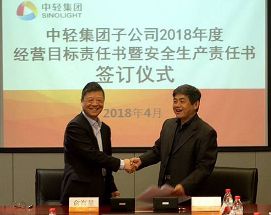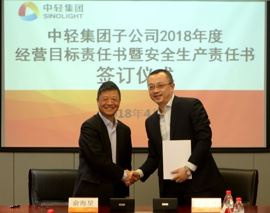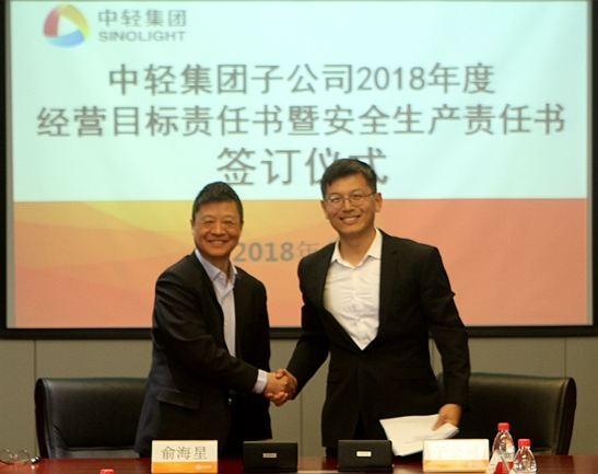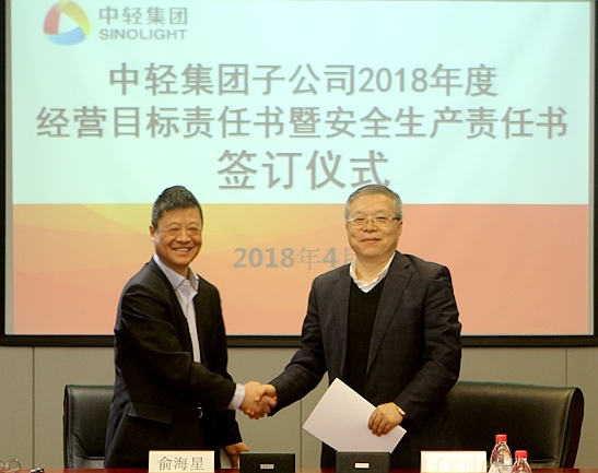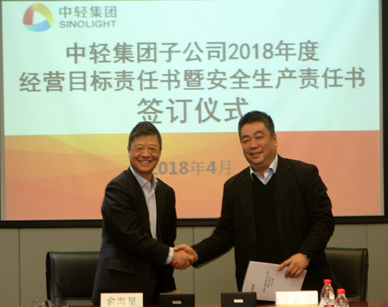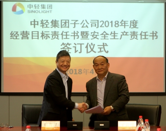 此次經(jīng)營目標責(zé)任書和安全生產(chǎn)責(zé)任書的簽訂是對中輕集團2018年總體生產(chǎn)經(jīng)營任務(wù)和安全生產(chǎn)任務(wù)的貫徹和落實。