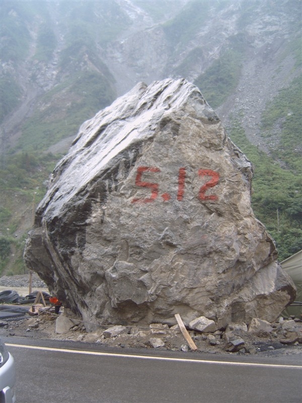 彭云:有天中午,我們從夾壁鄉(xiāng)衛(wèi)生院巡查完趕去另一個(gè)工地,兩個(gè)工地之間有一段未完工的317國(guó)道路基。受地震影響,道路遭受嚴(yán)重的破壞,兩邊山上時(shí)有滾石掉下。車在顛簸、搖晃中緩慢行駛,過了畢棚溝路口的小橋后是一個(gè)急轉(zhuǎn)彎。突然,前面從山上滾下一根木頭橫在車前,司機(jī)劉定峰大喊一聲“壞了!”,瞬間車子跳起來,劇烈搖晃,我下意識(shí)抱住了頭,身體在車內(nèi)左右撞擊,周圍的東西在搖晃,車在旋轉(zhuǎn),十幾秒鐘以后,一切戛然停止。我們又怔了十幾秒,“大家沒事吧?”我們異口同聲問道,我試著動(dòng)了動(dòng)四肢,沒受傷,其他人也都沒有受傷。在附近目睹這驚險(xiǎn)場(chǎng)面的工友們?nèi)颗苓^來拉我們出去。從車子里出來后,我們發(fā)現(xiàn)側(cè)翻車輛離河邊只有兩米!也要感謝劉定峰,在車摔到坑里前他死死的抓住方向盤,踩著剎車,避免了更大的險(xiǎn)情發(fā)生。
