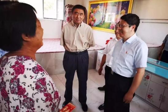 小牛群村蟬鳴陣陣,夏意濃濃。徐念沙一行參加了“保利集團(tuán)農(nóng)村老年互助幸福院”揭牌儀式,詳細(xì)了解互助院的運營模式,老人們的生活環(huán)境,看望精準(zhǔn)識別貧困戶,向他們送去保利集團(tuán)的關(guān)心和慰問。互助院是保利集團(tuán)在建設(shè)美麗幸福鄉(xiāng)村方面的一次嘗試:由保利投資改建完成,在不增加貧困家庭負(fù)擔(dān)的前提下,把居住分散的老年家庭集中在一起,分戶生活、互相幫助、統(tǒng)一服務(wù),改善老人生活照料,提升幸福感。