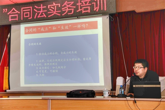 培訓中,集團法律事務部主管王佳龍緊密結(jié)合當?shù)胤鲐氻椖亢娃r(nóng)業(yè)經(jīng)營實際業(yè)務,通過以案說法的形式,用通俗易懂的語言對合同簽訂、履行、風險防范過程中應當注意的問題進行了分析,為鄉(xiāng)鎮(zhèn)干部上了一堂生動的法律課。集團法律事務部主辦薛暉在培訓前后向與會干部收集了與農(nóng)村生產(chǎn)生活密切相關(guān)的法律問題,為講座的針對性和普法效果的持續(xù)性打下基礎。