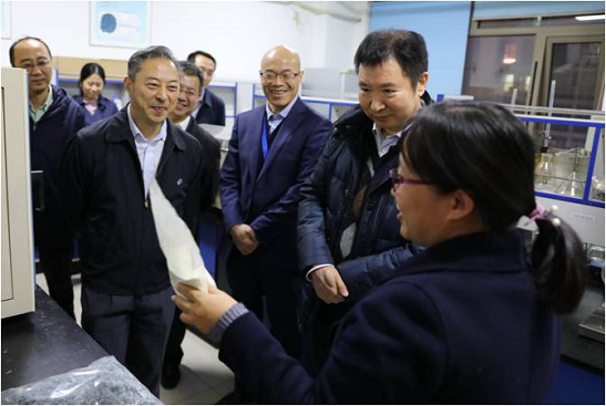 會(huì)后,曹國(guó)英一行在張萬順和蔡木易等人的陪同下參觀了皮革院,并對(duì)皮革院清潔生產(chǎn)、資源化利用、功能性皮革材料等方面的研發(fā)成果給予充分肯定。