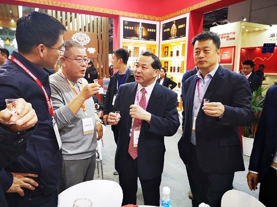 郭建全一行參觀展會,與食品院有技術(shù)合作的五糧液、酒鬼酒、國臺酒、釣魚臺酒、秦含章酒、梁大師等企業(yè)負(fù)責(zé)人深入溝通服務(wù)合作。