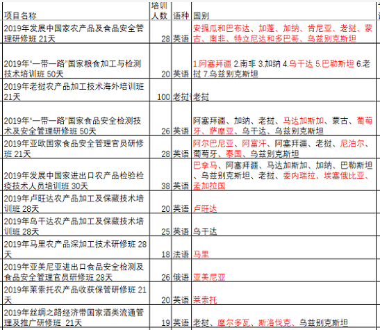 在食品院的對(duì)外培訓(xùn)中,學(xué)員來(lái)自亞洲、非洲、歐洲和拉丁美洲等,包括泰國(guó)、尼日爾、亞美尼亞、岡比亞、贊比亞、墨西哥、烏拉圭等幾十個(gè)個(gè)國(guó)家和地區(qū)的愈千名官員與技術(shù)人員參加了今年的研修與培訓(xùn),語(yǔ)種涉及英語(yǔ)、法語(yǔ)、葡語(yǔ)、阿拉伯語(yǔ)、俄語(yǔ)、老撾語(yǔ)、柬埔寨語(yǔ)、越南語(yǔ)、蒙古語(yǔ)、朝鮮語(yǔ)、斯瓦西里語(yǔ),級(jí)別從司局級(jí)到專(zhuān)業(yè)技術(shù)人員,培訓(xùn)領(lǐng)域涉及食品安全、進(jìn)出口食品檢驗(yàn)、農(nóng)產(chǎn)品加工、現(xiàn)代農(nóng)產(chǎn)品供應(yīng)鏈技術(shù)與食品安全管理、生物技術(shù)在食品工業(yè)中的應(yīng)用、食品加工及保藏、水果加工及綜合利用、糧食加工及檢測(cè)技術(shù)、啤酒釀造技術(shù)、酒類(lèi)流通管理及推廣、烹飪工藝與營(yíng)養(yǎng)膳食、畜禽產(chǎn)品深加工及安全質(zhì)量控制等多個(gè)領(lǐng)域。