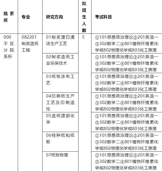 注:中國(guó)制漿造紙研究院有限公司二〇二〇年碩士研究生招生專(zhuān)業(yè)目錄