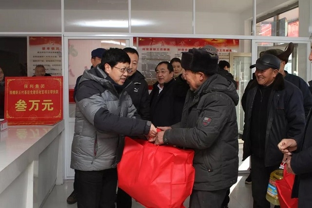 “感謝保利集團(tuán)和中輕集團(tuán)對(duì)我們的關(guān)懷和捐贈(zèng)!”在喀喇沁旗河北街道辦事處進(jìn)行的“愛(ài)在喀喇沁 扶貧送溫暖”2020年春節(jié)捐贈(zèng)儀式上,當(dāng)新丘村支部書記王有良、村長(zhǎng)郭瑞東分別從王珂靈、陳曉麗手中接過(guò)黨員活動(dòng)室建設(shè)幫扶款、春節(jié)慰問(wèn)物資的時(shí)候,他們發(fā)自肺腑地表示感謝,并向保利集團(tuán)贈(zèng)送了寫著“深入基層,精準(zhǔn)扶貧,情系百姓,溫暖人心”的錦旗。三萬(wàn)元的黨員活動(dòng)室建設(shè)經(jīng)費(fèi),可以讓村里的黨員能夠擁有一個(gè)更好的學(xué)習(xí)活動(dòng)場(chǎng)所;捐贈(zèng)給全村70歲以上老人和所有貧困戶的糧、油、棉被等生活用品,則能夠切實(shí)改善他們的生活。
