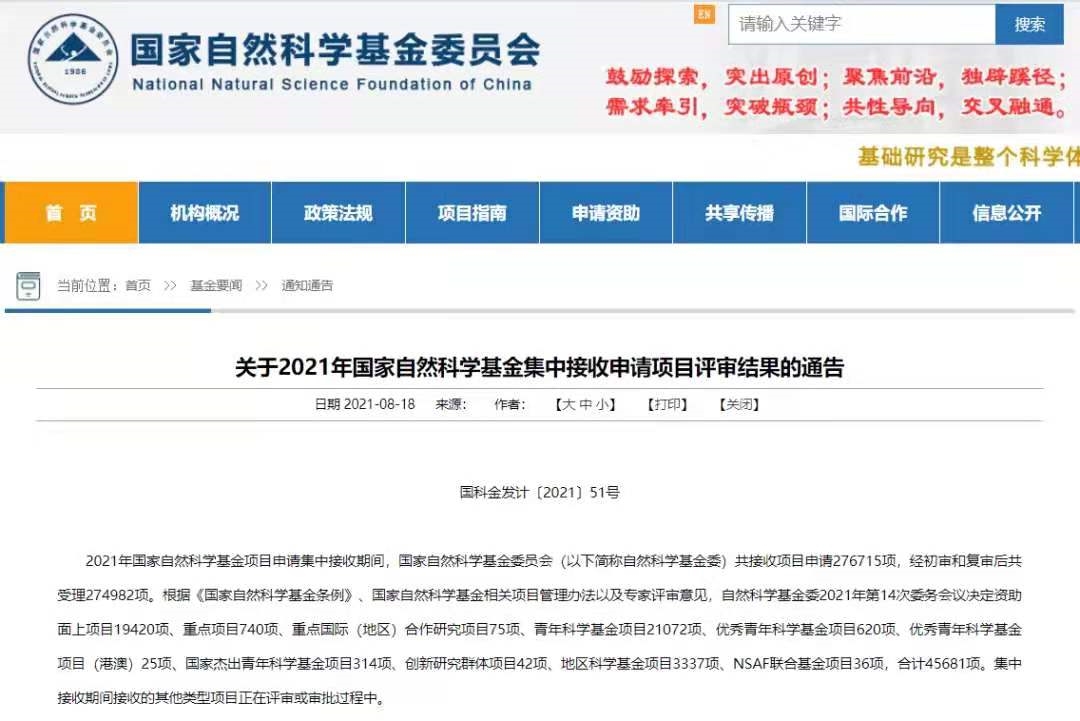 近日,國家自然科學基金委員會發(fā)布《關(guān)于2021年國家自然科學基金集中接收申請項目評審結(jié)果的通告》(國科金發(fā)計〔2021〕51號),保利中輕所屬兩家研究院獲批2個國家自然科學基金項目。