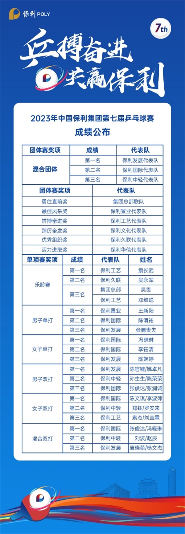 喜訊!保利中輕代表隊在保利集團第七屆乒乓球比賽中斬獲佳績
