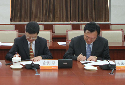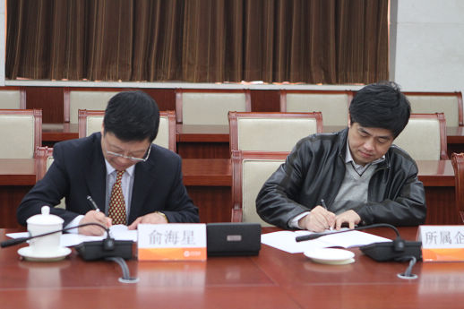 集團(tuán)公司總經(jīng)理俞海星與日化院院長(zhǎng)王萬(wàn)緒簽訂任務(wù)合同書