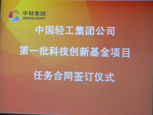中國(guó)輕工集團(tuán)公司首批科技創(chuàng)新基金項(xiàng)目任務(wù)合同書簽訂儀式于225在京舉行,集團(tuán)公司領(lǐng)導(dǎo)、集團(tuán)公司部門負(fù)責(zé)人、項(xiàng)目承擔(dān)單位主要負(fù)責(zé)人出席了儀式。