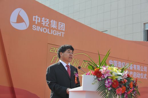 2012年10月23日,中國造紙裝備有限公司在其河北永清基地隆重舉行了以“自主創(chuàng)新 成就未來”為主題的“永清基地生產(chǎn)啟動儀式暨技術研討會”,向業(yè)界宣告了作為中國高端造紙裝備技術引領者正式亮相。國務院國資委監(jiān)事會主席尋寰中、中國輕工業(yè)聯(lián)合會副會長錢桂敬、廊坊市常務副市長蔣洪江、國家工信部規(guī)劃司副司長兼廊坊市副市長顧強、國家發(fā)改委產(chǎn)業(yè)協(xié)調(diào)司輕紡處處長曲美玉、中國工程院院士兼華南理工大學教授陳克復、中國造紙學會理事長陳學忠等出席了啟動儀式。集團公司董事長陳鄂生、總經(jīng)理俞海星、副總經(jīng)理馬思一、曹振雷出席了啟動儀式。