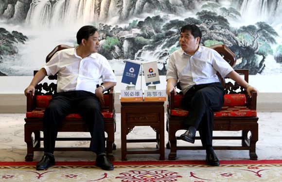 88日,中輕集團(tuán)黨委書記、董事長(zhǎng)陳鄂生在中輕大廈會(huì)見了荊門市委書記別必雄一行。